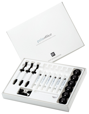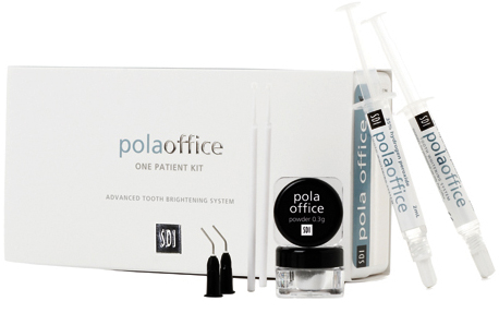 Bieliaci systém s 35% H2O2. Vhodný na rýchle bielenie v ordinácii. Na rozdiel od väčšiny prípravkov na bielenie sa POLAOFFICE pripravuje bezprostredne pred aplikáciou. Systém obsahuje aktívnu zložku (35% peroxid vodíka) a stabilizátor, na rozdiel od jednozložkových prípravkou, ktoré bývajú veľmi nestabilné.