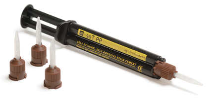 samoleptací, samofixačný chemicky a svetlom tuhnúci živicový cement. Bol vytvorený na cementovanie nepriamych dostavieb s keramikou, kovom alebo kompozitami, inlaye, onlaye, korunky, mostíky, piliere a šróby. Pri použití nie je nutné bondovanie ani leptanie - seT uvoľňuje fluorid.
