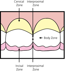 Zubné odtiene sú odvodené od štyroch farebných zón: